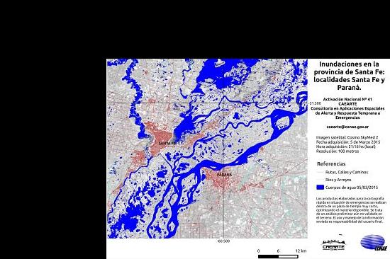 The Argentinean National Space Activities Commission (CONAE) has been producing information about recent floods based on radar satellite images. In March, the provinces of Santa Fe and Santiago del Estero suffered from intense floods.