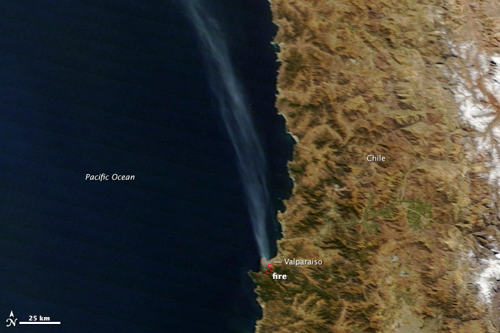 The International Charter: Space and Major Disaster was activated on 14 April due to forest fires, near the city Valparaiso, Chile. The fires have killed 12 people and over 10 thousands were evacuated.