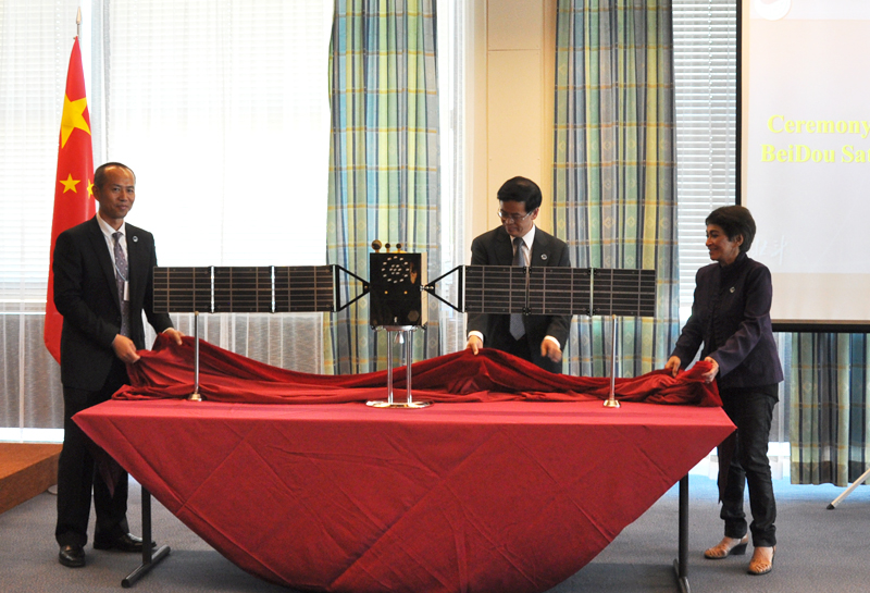 On the sidelines of the 55th session of the Committee on the Peaceful Uses of Outer Space (COPUOS), the Chinese BeiDou/COMPASS satellite model was inaugurated on 8 June 2012 in Vienna, Austria. The model is donated by the People's Republic of China. This Chinese navigation satellite model will be added to the Exhibit of the United Nations Office for Outer Space Affairs headquarters in the Vienna International Centre. The Beidou/COMPASS satellites are part of a Chinese satellite navigation system. The first BeiDou system has been offering navigation services in China and the region since 2010. The second generation of the system, Compass/BeiDou-2, will eventually consist of 35 satellites and became operational in December 2011.