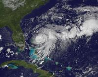 On July 18 at 8 a.m. EDT, Tropical Depression 2 strengthened into Tropical Storm Bret. Maximum sustained winds were up to 50 mph. At that time, Bret was just 65 miles north-northwest of Great Abaco Island (and about 200 miles off the eastern Florida coast) near 27.4N 77.5W, trudging along at 3 mph to the northeast. Minimum central pressure is 1001 millibars.