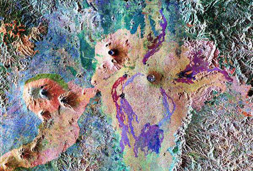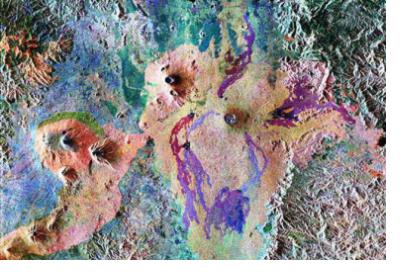 Earth observing satellites, such as ESA’s Envisat, can detect unrest of currently unmonitored volcanoes. Movement of magma underground may cause deformation of the surface above, thus InSAR can be used to monitor volcanoes. InSAR or Interferometric Synthetic Aperture Radar is a remote sensing technique where two or more radar images over the same area are combined to detect slight surface changes occurring between acquisitions. Tiny changes on the ground lead to rainbow coloured interference patterns in the combined image.
