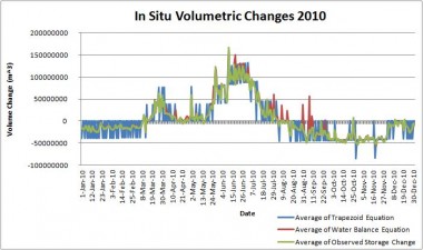 Current regional and global scale hydrological models, such as the Coupled Routing and Excess STorage (CREST) model, do not take into account the release and storage of water by man-made dams. These models make gross assumptions about dam operation, impairing their accuracy and utility. In many less economically developed areas of the world, it is not possible to acquire information on the timing and extent of water release in dammed regions. Therefore, a remotely sensed-based solution to this problem is highly desirable. Flow rate estimations can be computed by intersecting surface water extent maps with digital elevation models (DEMs). Moderate Resolution Imaging Spectroradiometer (MODIS) land surface reflectance data provided the basis for area calculations for the water extents, while the HydroSHEDS DEM provided elevation data. Together, the area and elevation measurements produced the volumetric changes in dams, which are necessary for accurate hydrological modeling. This concept was tested with preliminary volume equations based upon in-situ data. Preliminary volume equations based upon in-situ stream flow measurements from the U.S. Army Corps of Engineers were used to provide a proof-of- concept for flow rate estimations. Since many drainage basins contain man-made water bodies, this predictive tool will ultimately improve hydrological models around the world, specifically those used by our partners in the DisasterAWARE program at the Pacific Disaster Center.