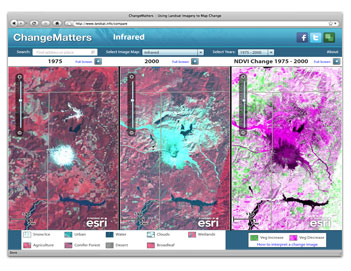 "These Landsat image services expand the ability to monitor landscape change to Internet users worldwide," says Jack Dangermond, president of Esri. "We're excited to showcase this valuable government resource that uses ArcGIS to rapidly deliver Landsat data so that it can be used to help users understand changes in the world."