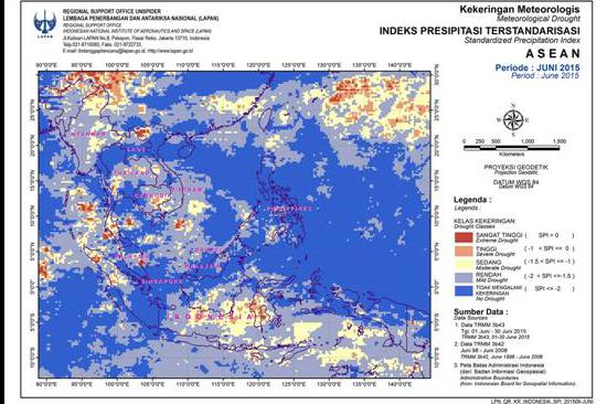 ENSO events are bringing an impact on the occurrence of drought in some of Southeast Asia regions. Indonesia National Institute of Aeronautics and Space (LAPAN), as Regional Support Office of UN-SPIDER in Southeast Asia, has been monitoring the drought condition over the regions since June 2015.