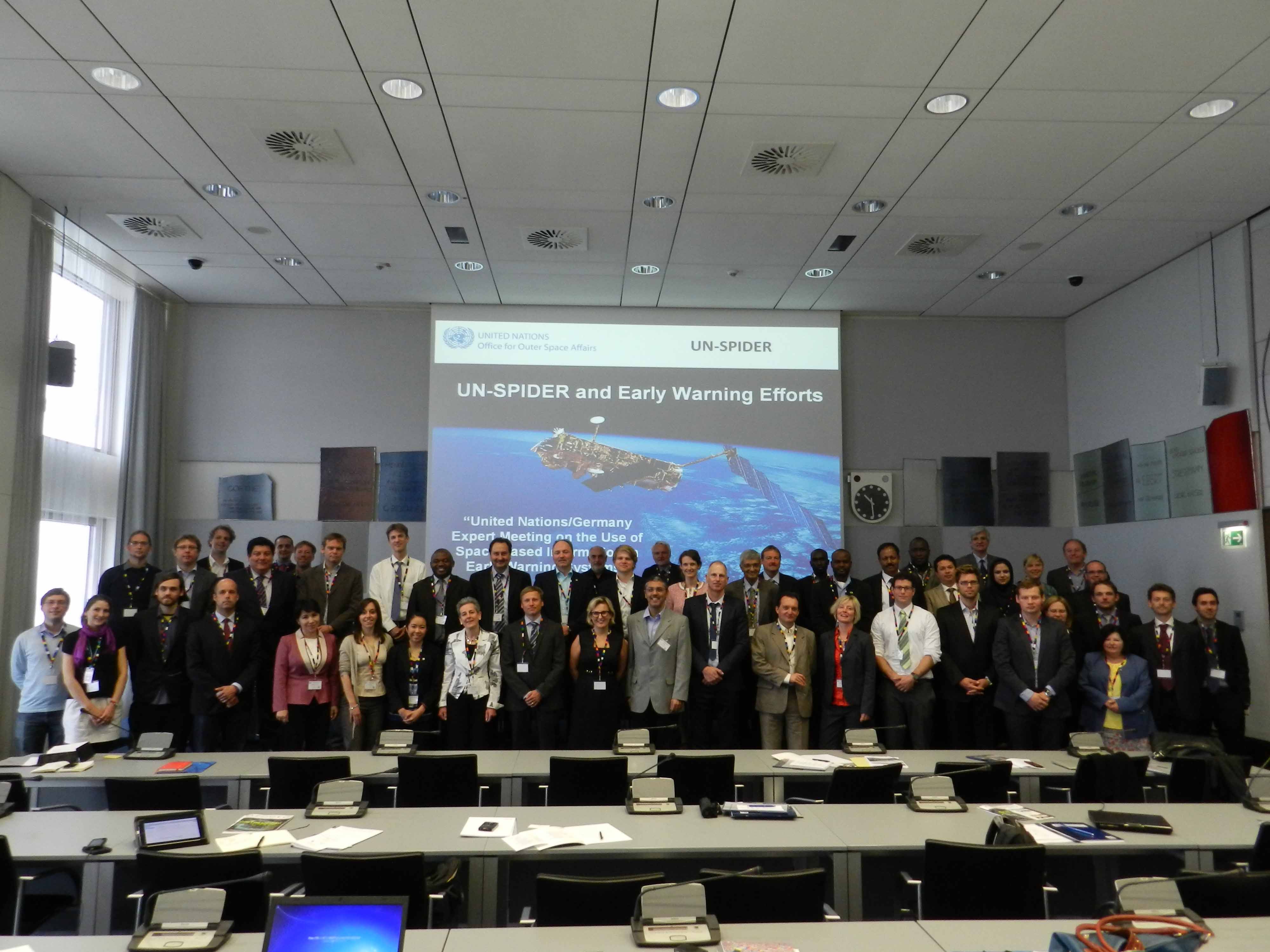 On 26 June 2013, the UN-SPIDER Programme wrapped up a two-day expert meeting focusing on space-based applications in Early Warning Systems. Taking into consideration the role of early warning systems in minimizing damages and losses in case of disasters, UN-SPIDER co-organized the meeting with the Government of Germany and the German Aerospace Center (DLR); with the support of Secure World Foundation (SWF) and the German Federal Office of Civil Protection and Disaster Assistance (BBK). The Expert Meeting brought together fifty two space technology and disaster management experts representing national, regional and international organizations, internationally active private companies and included representatives of UN-SPIDER Regional Support Offices.