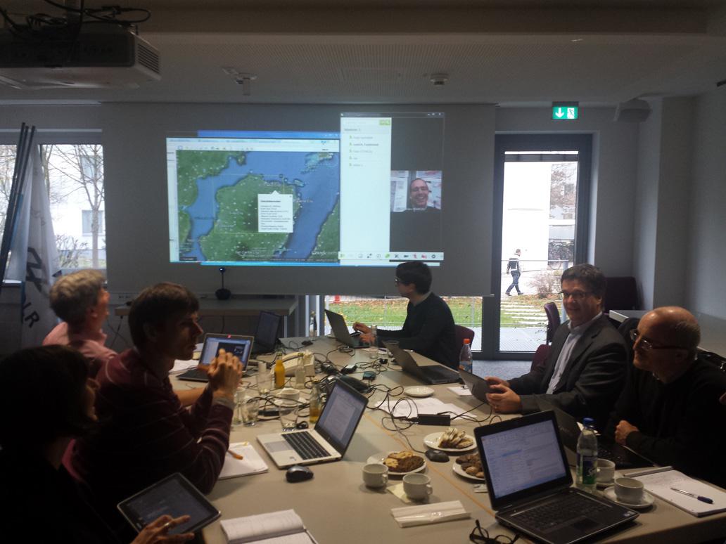 18 participants from international and national agencies and organizations joined the meeting in person or via telephone/video chat, including DLR, the European Commission's Joint Research Centre (JRC), UN-SPIDER, the US Geological Service (USGS), the World Bank, ITHACA, the Japan Aerospace Exploration Agency / Asian Institute of Technology and SERTIT.