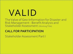 The VALID project is a follow-up on the booklet "Geoinformation for Disaster and Risk Management - Examples and Best Practices" which was officially launched during the Centenary Congress of the International Society for Photogrammetry and Remote Sensing (ISPRS) in Vienna on July 2, 2010. For this publication, JBGIS and UN-SPIDER jointly invited the global stakeholder community to contribute articles for a collection of case studies, application examples and best practices. They received and evaluated more than 70 responses, finally taking into account 16 of them. It convincingly demonstrates various aspects of geospatial technology and how that technology can be efficiently integrated into risk and disaster management. More information is available from the ISPRS website